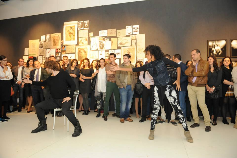 The starting point was given by the exhibition objects, as inspirational source for the creation of the movement and the “red line” of performance.
